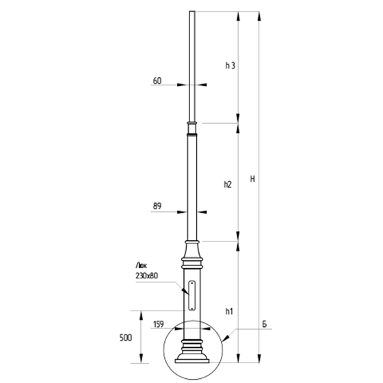 50 - высота 5.0 м;